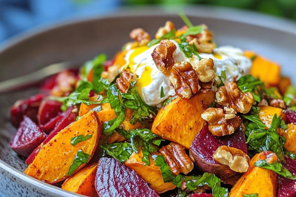 The Beet and Sweet Potato Salad with Burrata, Walnuts, and Maple Dijon Dressing is a feast for both the eyes and the palate. The vibrant colors, rich textures, and balanced flavors make this dish a standout addition to any meal. Whether you’re hosting a special dinner or looking for a nutritious and delicious salad to elevate your weekday meals, this recipe delivers on all fronts. Packed with wholesome ingredients and dressed with a mouthwatering maple Dijon dressing, this salad will leave everyone asking for seconds.
