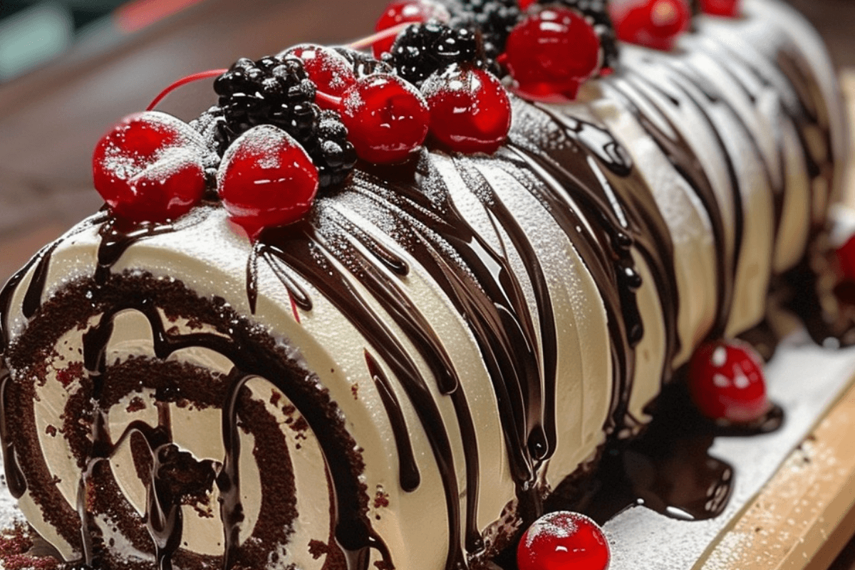 Elegant Black Forest Roll Cake