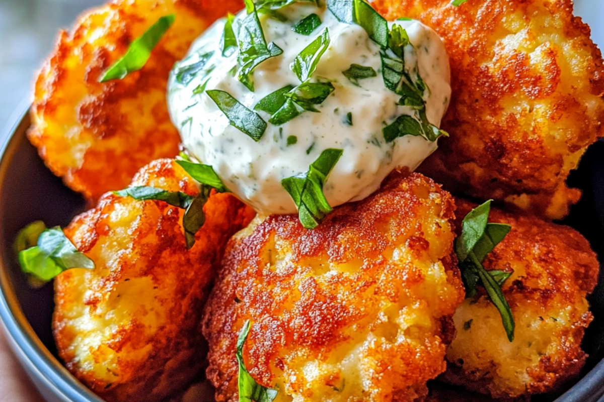 Cauliflower and Parmesan Fritters with Lemon Herb Yogurt Sauce