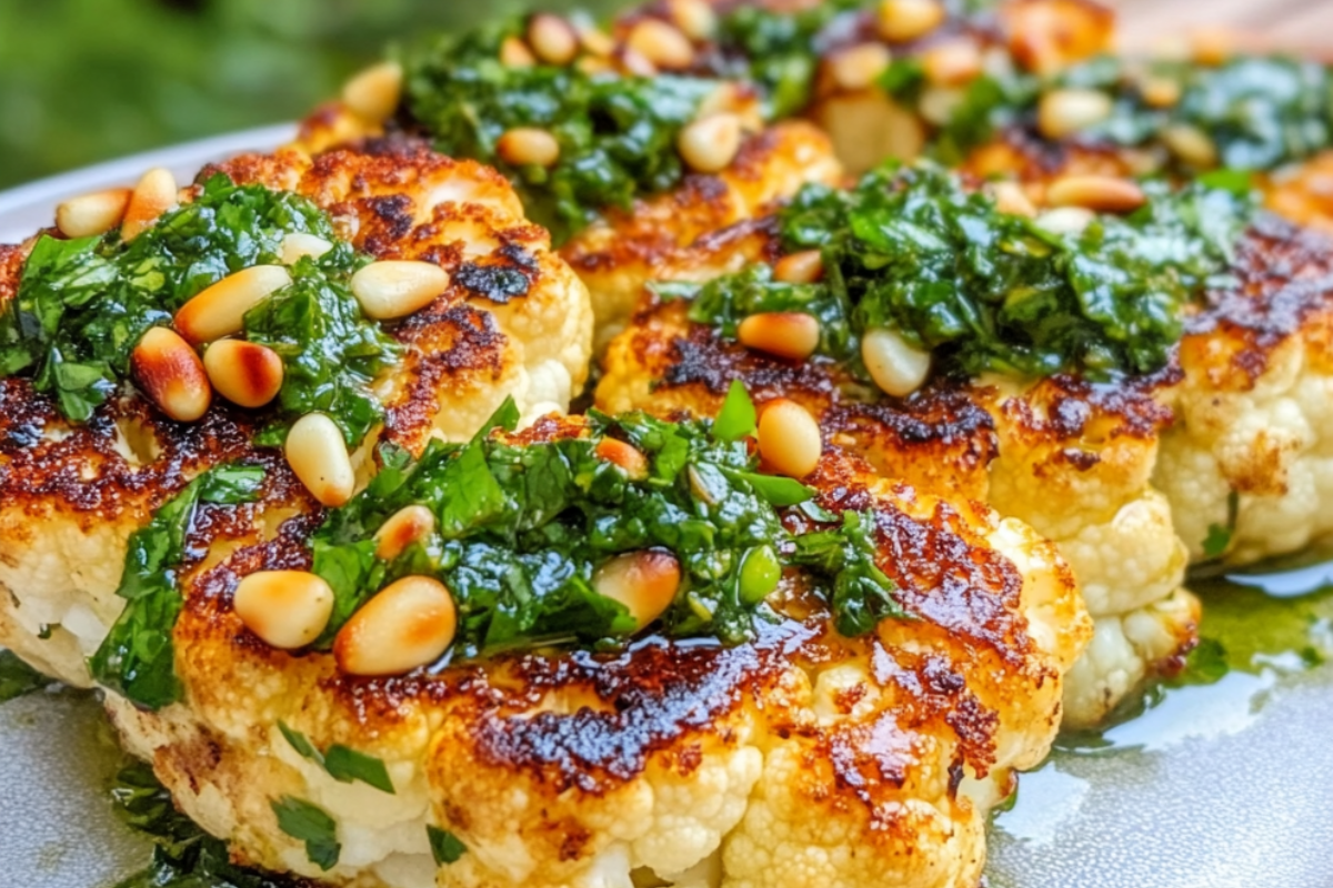 Cauliflower Steak with Chimichurri and Toasted Pine Nuts