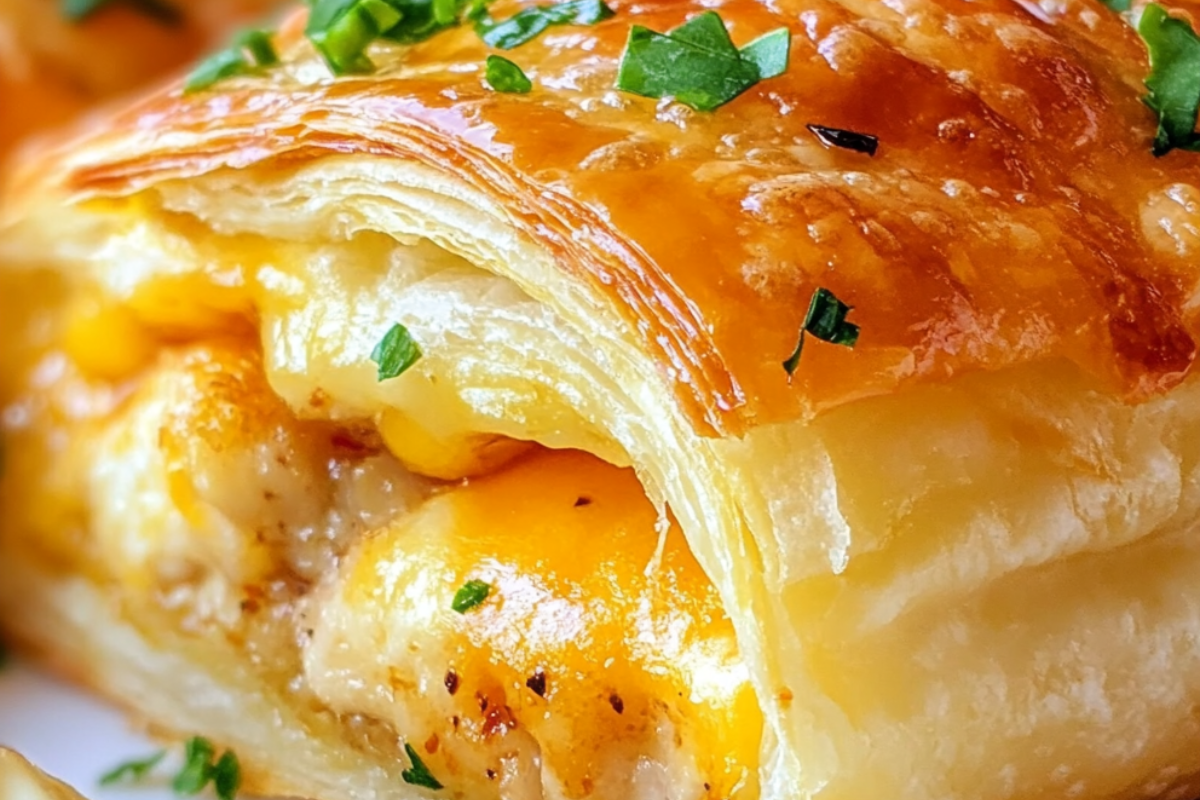 Cheesy Chicken Puff Pastry with Garlic Butter Sauce