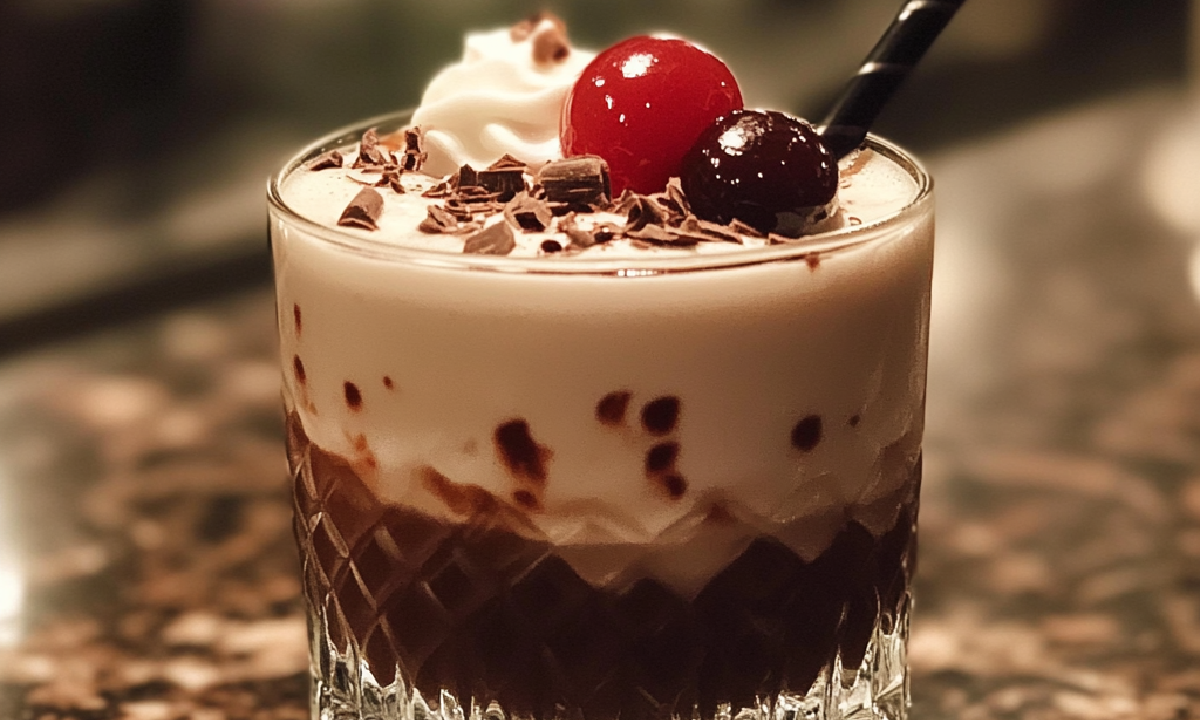 - 1 oz (30 ml) cherry liqueur or cherry syrup – Provides a fruity and tangy note, balancing the richness of the chocolate and cream.