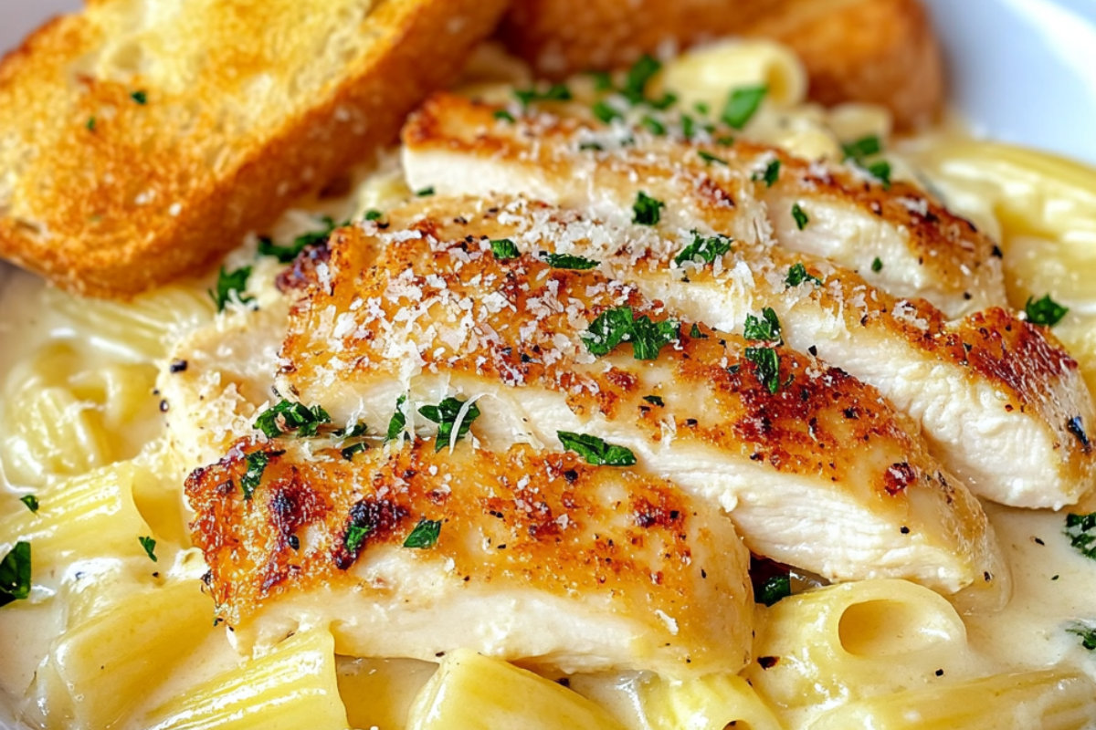 Chicken Alfredo is a classic Italian-American dish that offers creamy, cheesy comfort in every bite. This indulgent meal combines tender, juicy chicken breasts with a rich and velvety Alfredo sauce made from Parmesan cheese, butter, garlic, and heavy cream. Paired with a side of crispy, golden garlic bread, it makes for a mouthwatering combination that’s perfect for a family dinner or a cozy night in. This dish is loved by all ages, thanks to its creamy texture and savory flavors. Let’s dive into the details of how to create the perfect Chicken Alfredo with Garlic Bread!