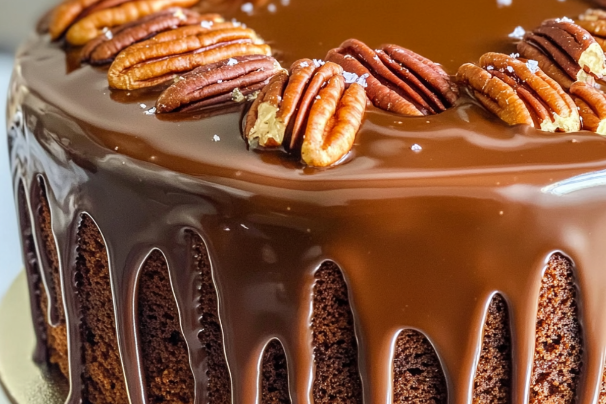 Indulge in the rich, velvety goodness of a chocolate butter cake, perfectly complemented by a smooth hazelnut glaze and the satisfying crunch of roasted pecans. This cake is layered with deep chocolate flavor, intensified by a luxurious hazelnut glaze, and finished with a sprinkling of flaky sea salt to balance the sweetness and enhance the nutty flavors. Perfect for special occasions or a decadent treat, this cake combines textures and flavors for a memorable dessert that’s sure to impress!