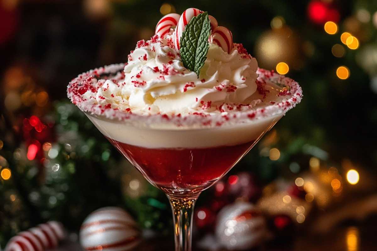 - Garnish: Crushed candy canes, whipped cream, and mint leaves