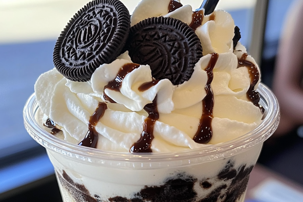 Blend the mixture on high speed for about 30-45 seconds or until it becomes smooth and creamy. The ice should be fully crushed, and the cookies should be blended into small, fine pieces that give the drink its signature flavor and texture.
