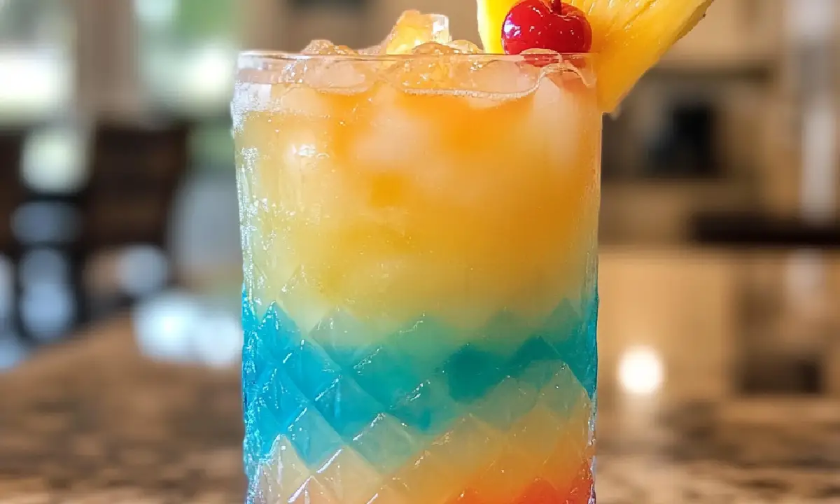 One of the first things you’ll notice about this cocktail—before the first sip even hits your lips—is how stunning it looks. The vibrant hues layer beautifully, transitioning from a golden, citrusy orange to a deep, oceanic blue thanks to the Blue Curaçao. A gentle splash of grenadine settles at the bottom, creating a glowing pink-to-red sunset effect. It’s a drink that’s not just delicious but also an instant eye-catcher—ideal for Instagram-worthy moments, party presentations, or just making your solo happy hour feel extra special.