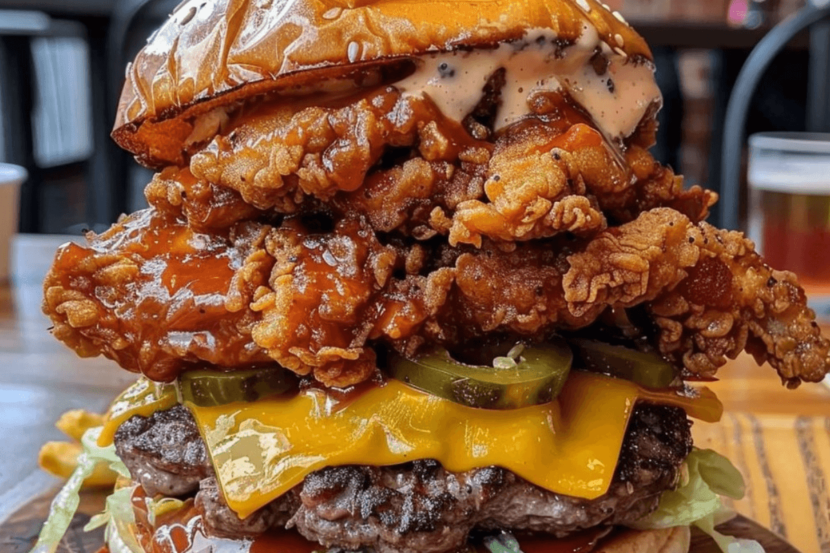 The Epic Double-Decker Burger with Fried Chicken and Jalapeños is the ultimate indulgence for burger lovers. Combining juicy beef patties, crispy fried chicken, melted cheese, and tangy jalapeños, this towering creation is perfect for anyone with a big appetite. Whether you’re hosting a BBQ or looking to treat yourself to an epic meal, this burger will deliver in flavor and satisfaction. Let’s get started!