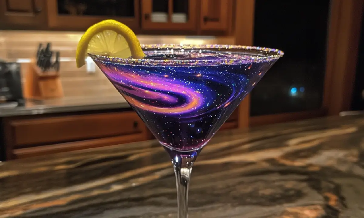 Perfect for space lovers, cocktail enthusiasts, and anyone looking to enjoy a visually stunning drink, the Galaxy Swirl Martini is a magical experience in every sip.