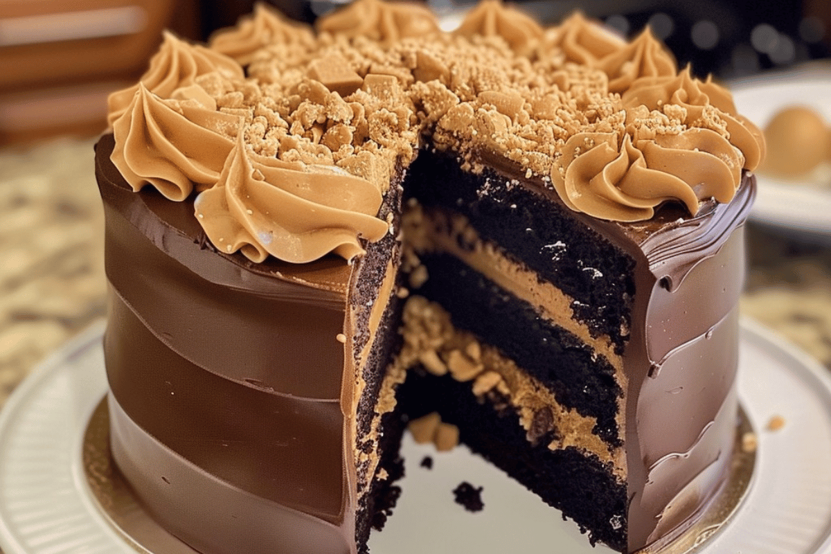 Experience the perfect union of chocolate and peanut butter with this decadent homemade chocolate peanut butter cake. Layered with rich, moist chocolate cake, creamy peanut butter frosting, and topped with a luscious chocolate ganache, this cake is a crowd-pleaser for any occasion. Garnished with mini peanut butter cups, it’s a dream dessert for chocolate and peanut butter lovers alike!