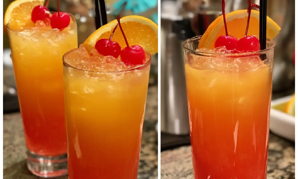 Before you start, make sure you have all the ingredients ready. You’ll need peach schnapps, coconut rum, cranberry juice, pineapple juice, and orange juice. If you’re opting for the optional splash of grenadine for extra color, have that ready too. You’ll also need ice cubes and your garnishes (pineapple wedge, cherry, and sugar for the rim).