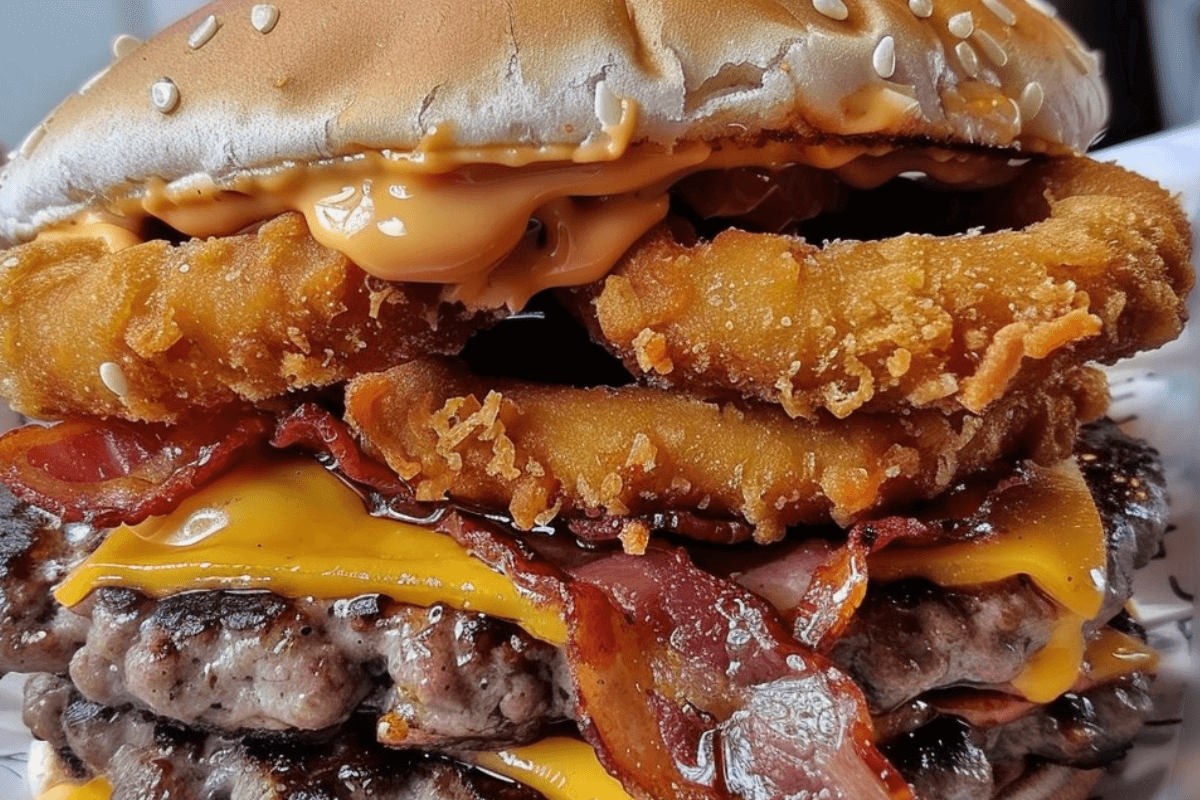 The Loaded Cheeseburger with Onion Rings is a showstopper, combining juicy beef patties, melted cheddar, and crispy onion rings for a flavorful, satisfying bite. It’s customizable, easy to prepare, and perfect for any occasion. Serve it with your favorite sides, and you’ve got a meal that will leave everyone asking for seconds. Dive into this recipe and enjoy a burger experience like no other!