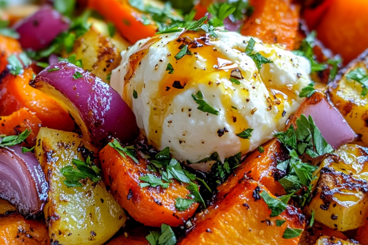A Maple Roasted Veggie Bowl with Burrata is the perfect combination of earthy vegetables, creamy cheese, and a touch of sweetness from maple syrup. This dish brings together a rich medley of roasted vegetables, generously drizzled with maple syrup, balanced with the creamy and luxurious taste of fresh burrata cheese. It’s an ideal meal for those looking for a nourishing, vibrant, and flavor-packed dinner that’s perfect for any season. This dish is not only visually stunning but also loaded with healthy nutrients, making it both a feast for the eyes and a wholesome, satisfying meal. Perfect for vegetarians, food lovers, or anyone looking to indulge in a hearty yet elegant bowl of goodness.