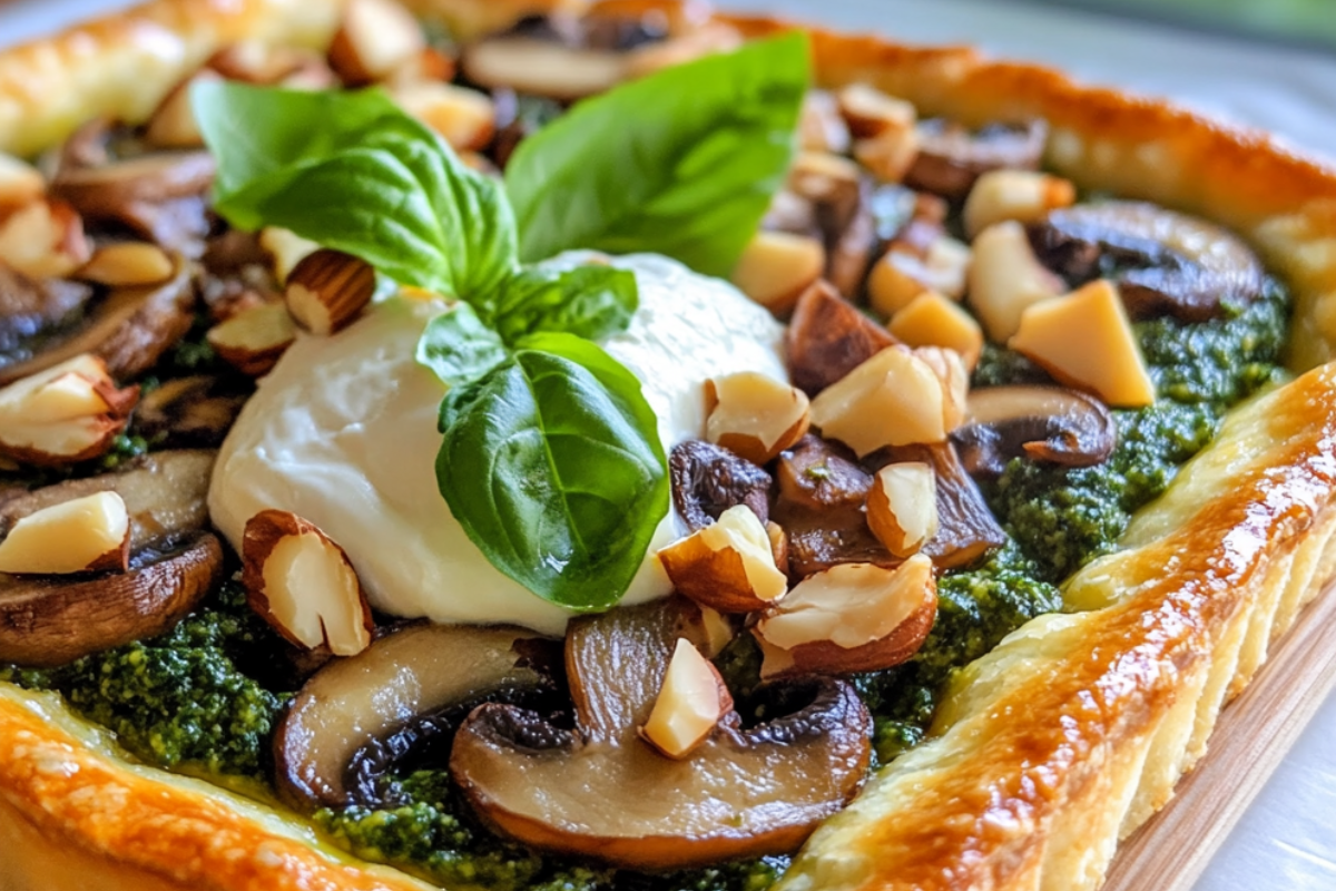 The Mushroom and Spinach Tart with Burrata and Toasted Hazelnut Pesto is an elegant yet simple dish that brings together rich, savory flavors with a touch of creamy decadence. It’s a versatile recipe that can easily adapt to various dietary preferences and is sure to impress at any gathering. Whether you’re hosting brunch or looking for a unique dish to serve at a dinner party, this tart will be a memorable addition to your table.