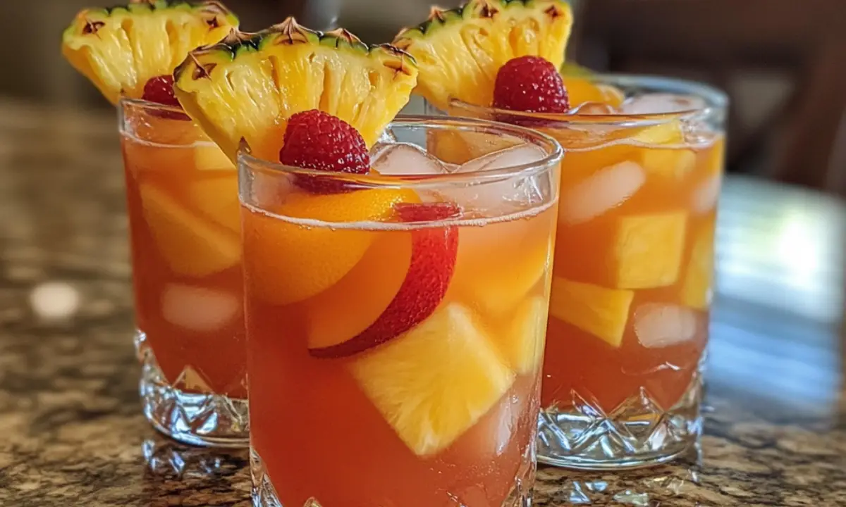 This punch is your one-way ticket to a tropical escape—no passport required. With a juicy medley of pineapple, orange, and coconut water, each sip bursts with bold, fruity flavors that conjure images of sun-soaked beaches, swaying palms, and crystal-clear waters. It’s sweet, tangy, and utterly refreshing, delivering instant vacation vibes whether you’re sipping it poolside or just dreaming of the islands from your backyard.