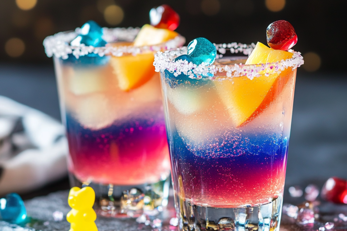 The Forever Young Shot is a vibrant, visually stunning, and deliciously fruity cocktail that combines the sweet and tangy flavors of peach schnapps, blue curaçao, and fresh pineapple juice. With its bold colors and smooth texture, this shot is perfect for any party, celebration, or festive event. The added touch of edible glitter on the sugared rim gives it an extra sparkle, while the citrus peel garnish adds an elegant flair. Whether you’re celebrating a special occasion or just enjoying a fun night out, the Forever Young Shot will keep the energy lively and the spirits high.