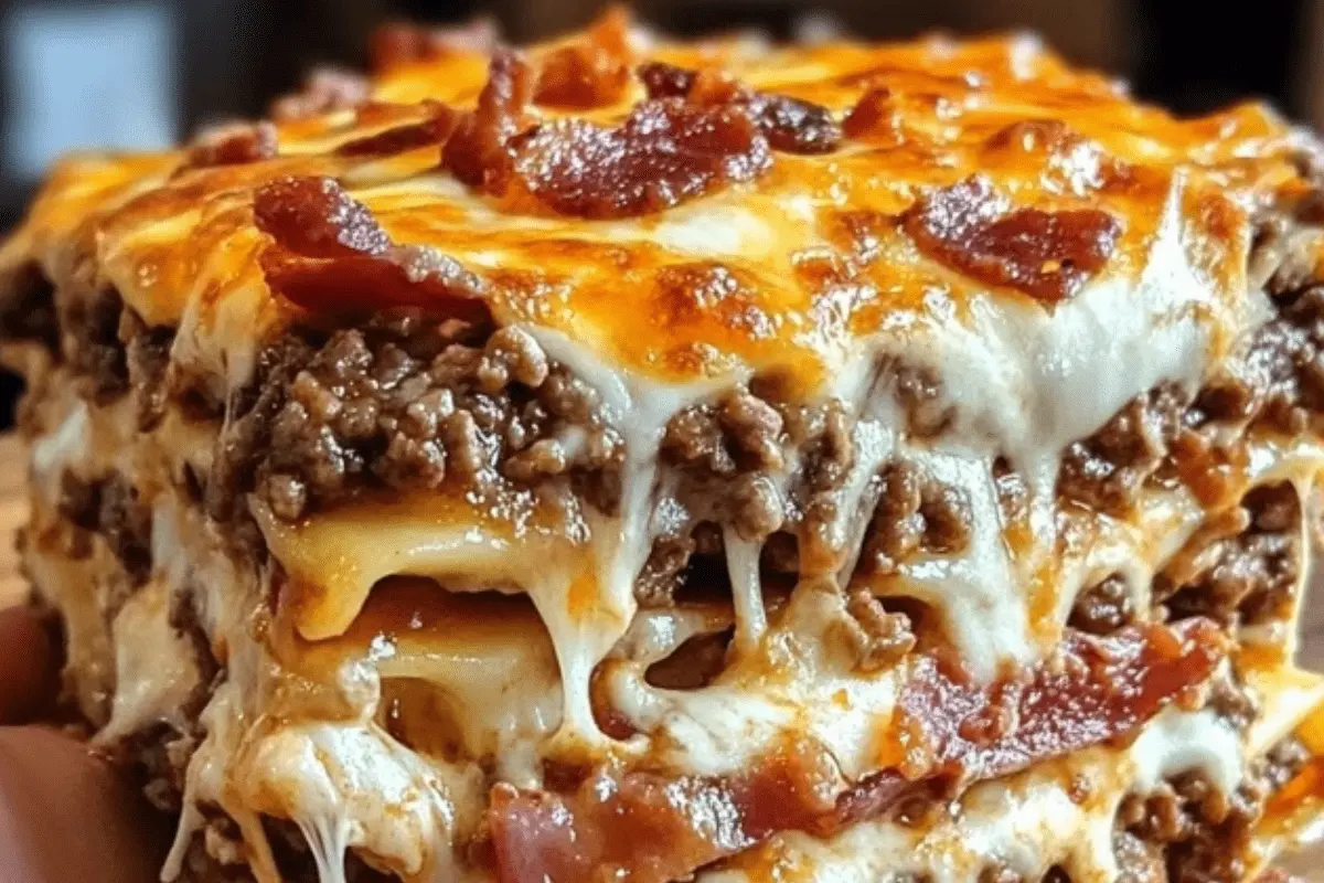 Get ready for a flavor-packed comfort food experience with Parmesan Garlic Bacon Cheeseburger Lasagna. This mouthwatering recipe combines layers of rich marinara sauce, creamy Parmesan garlic béchamel, crispy bacon, seasoned ground beef, and gooey melted cheese, all nestled between perfectly cooked lasagna noodles. It’s a delicious twist on classic lasagna, designed to satisfy your burger and pasta cravings in one indulgent dish. Whether it’s for a cozy family dinner or a potluck, this recipe will be the talk of the table!