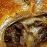 This Philly Cheesesteak Stromboli combines the essence of the classic Philly cheesesteak with the rustic appeal of a stromboli. It’s filled with tender slices of steak, perfectly cooked veggies, and gooey cheese, all wrapped in a warm, crispy crust. Whether you’re looking to impress at a game-day gathering or want a hearty weeknight meal, this stromboli delivers bold flavors in every bite.